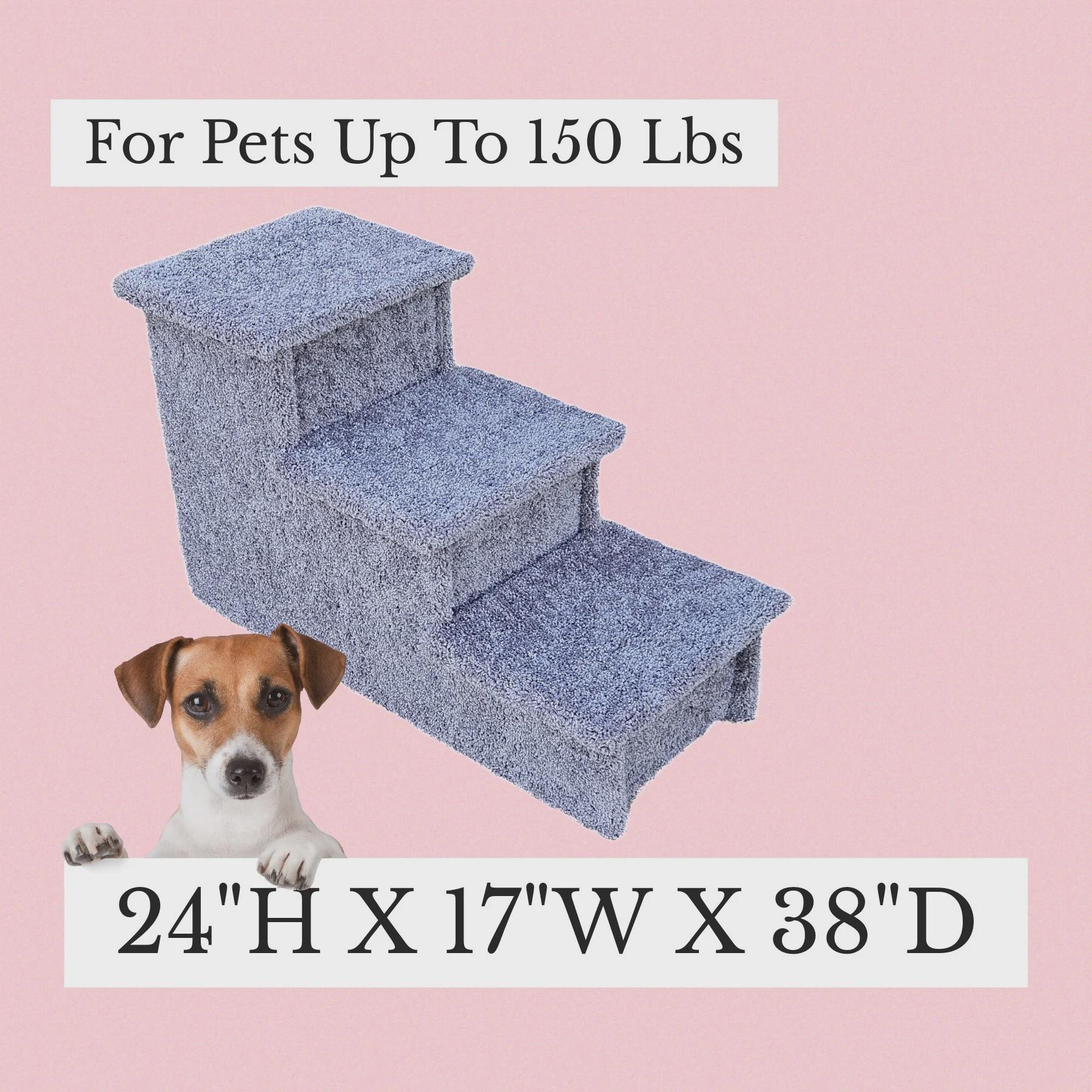 Help your pet reach tall beds with confidence using these 3-step heavy-duty wooden dog stairs, designed for pets from 5–150 lbs. Standing 24" high and 38" deep, these sturdy carpeted steps are ideal for large breeds, senior dogs, or pets with mobility challenges.